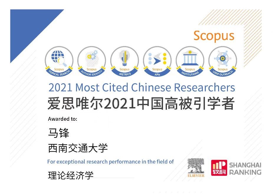 2022年4月14日,全球性信息分析公司(爱思唯尔,Elsevier)正式发布了2021“中国高被引学者”榜单,西南交通大学经济管理学院马锋副教授入选理论经济学中国高被引学者,也是全国25位理论经济学上榜学者之一。 马锋副教授的主要研究方向为金融计量、预测及风险管理,在金融市场波动与收益率建模预...
